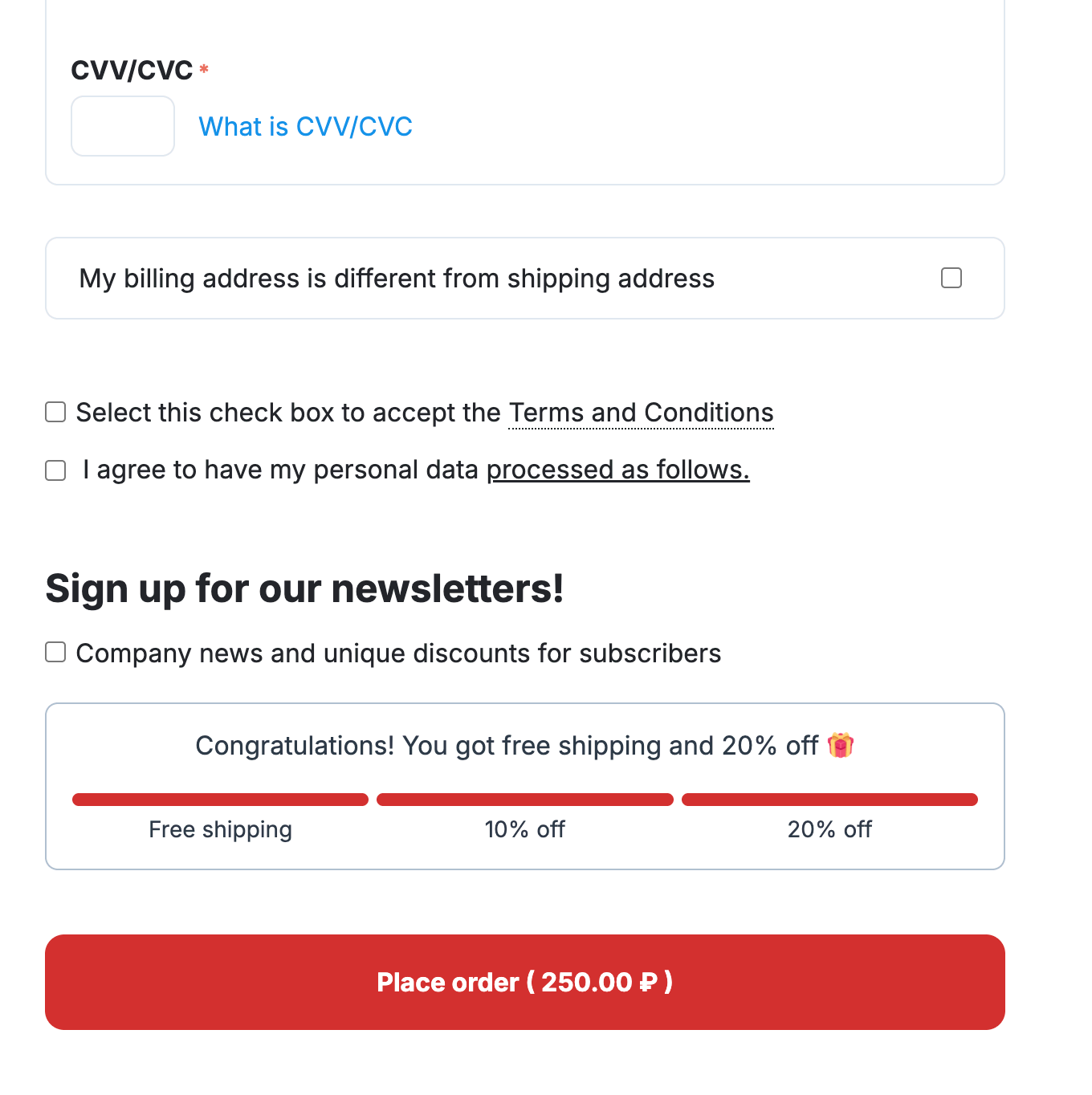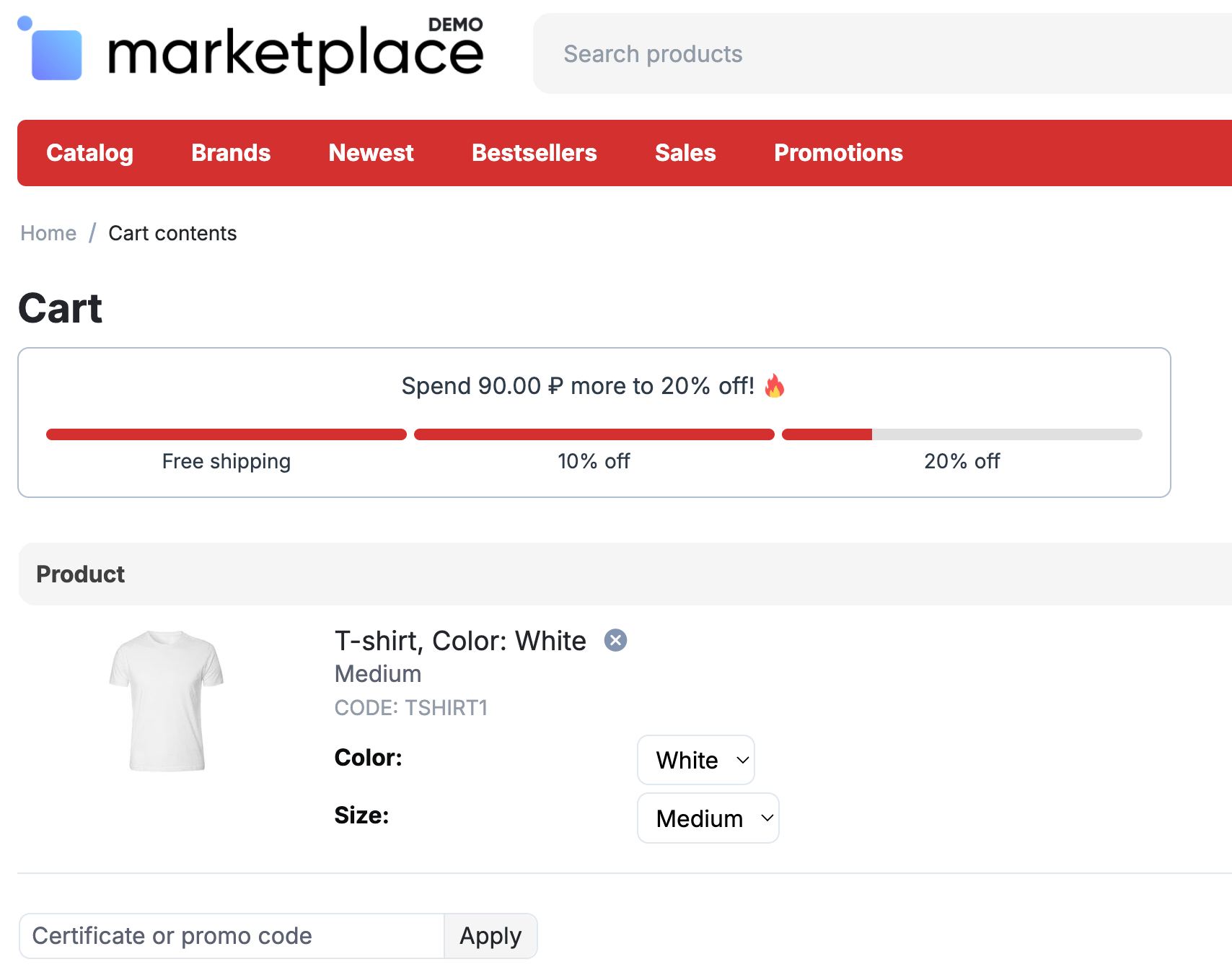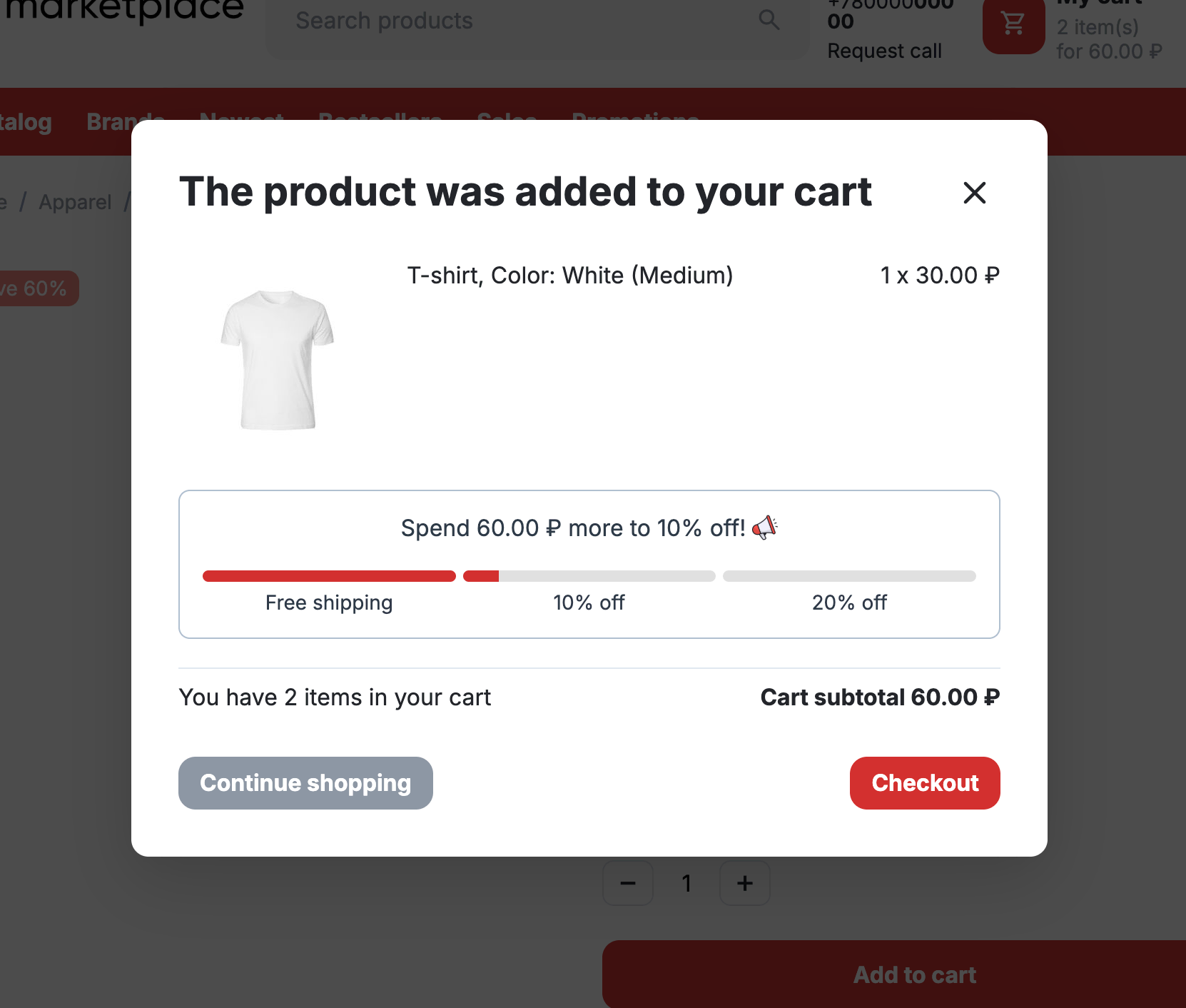 Turn your promotions into a powerful motivation engine: customers always see how much is left to unlock the next benefit, and that drives them to increase the cart total.